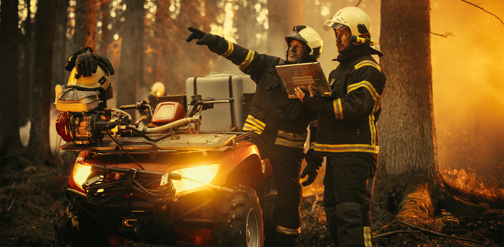 Header image: Firefighters using a laptop to input field data (Getty Images)